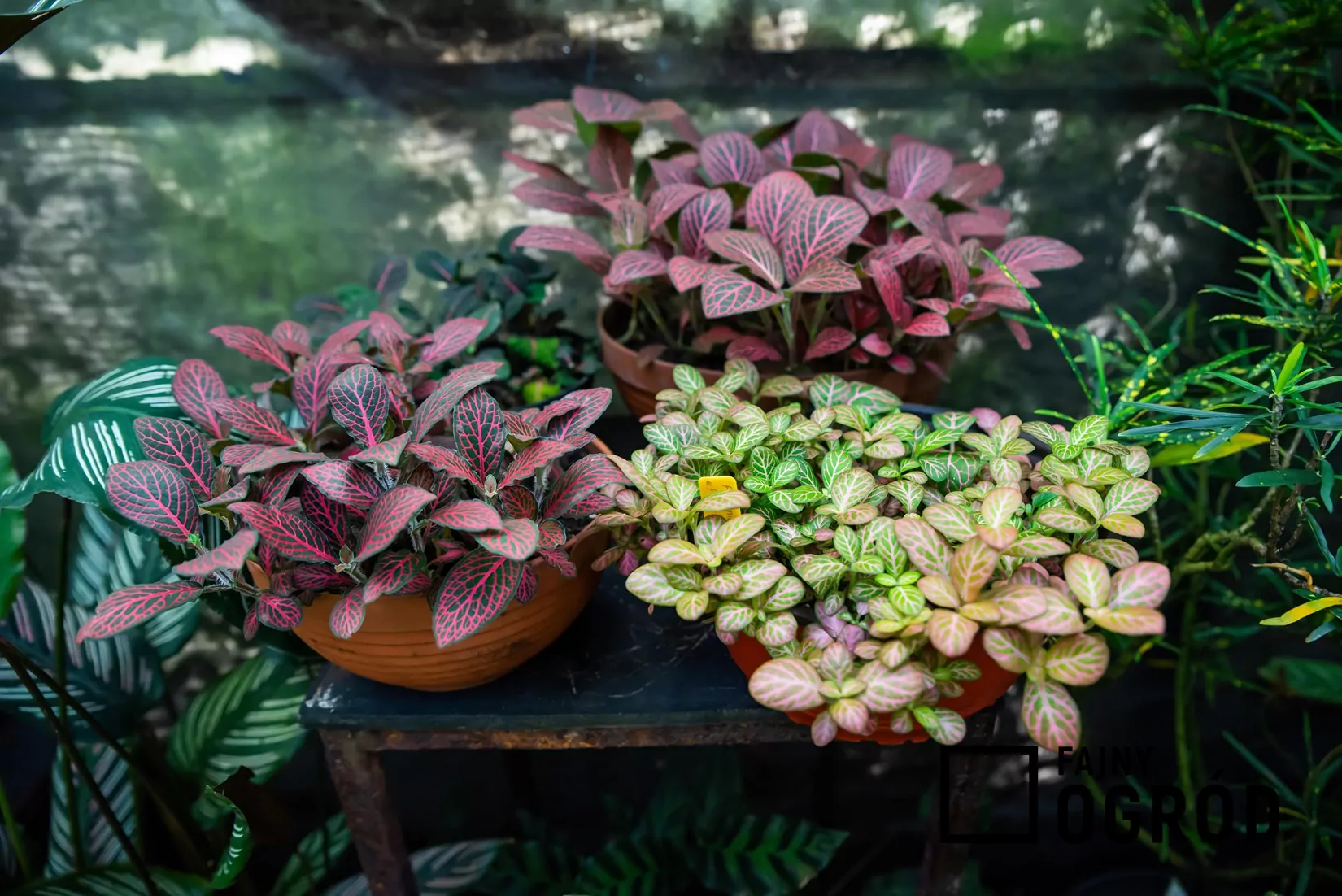 Fitonia białożyłkowa 'Red Forest Flame' to roślina znana również pod nazwą fitonia czerwona. Fitonia 'Red Forest Flame' jest odmianą o niewielkich liściach ozdobionych wyraźnymi, czerwonymi żyłkami, przypominającymi płomienie rozchodzące się po blaszce liściowej. Tworzy niskie, gęste kobierce.