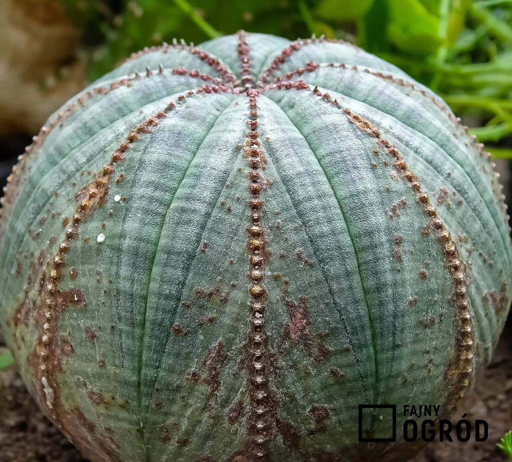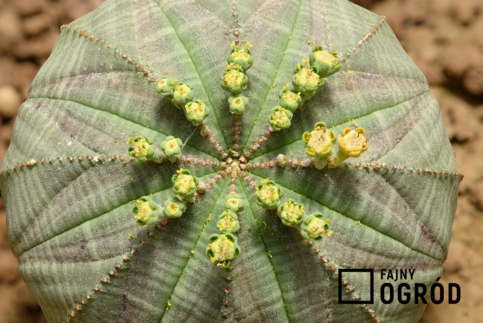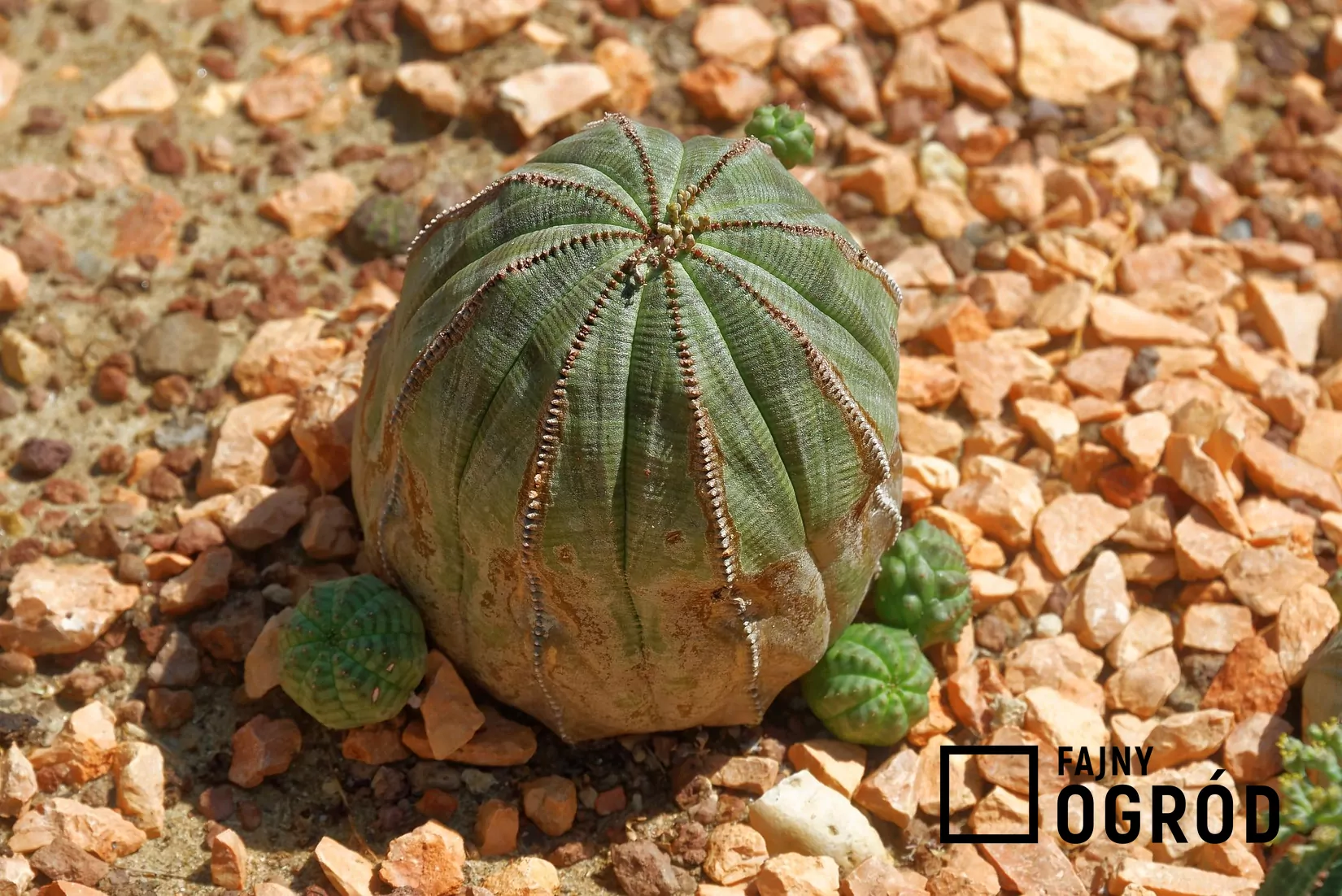 Powyższe zdjęcie przedstawia wilczomlecz opasły. Łacińska nazwa tej rośliny to euphorbia obesa. Zobacz, jak wygląda wilczomlecz opasły na innych zdjęciach poniżej.